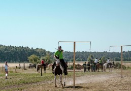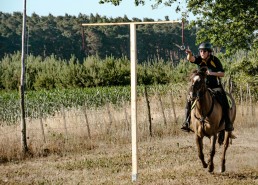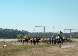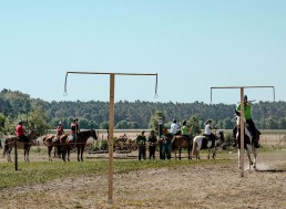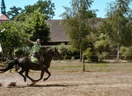 On the occasion of the 650-years celebrations of Krügersdorf in Brandenburg, a tent pegging tournament saw six teams with a total of 24 riders compete with each other. Special guest of the tournament: former world champion South Africa.