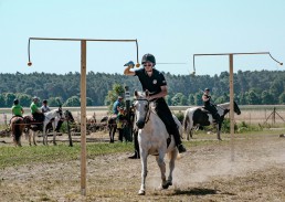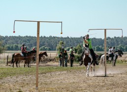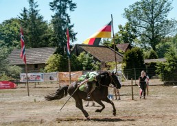 On the last weekend of June 2019, an international tent pegging tournament organized by the Oder Spree -Tent Peggers was held under a blistering 40 degrees and bright blue skies. The contest took place on the occasion of the 650-years celebrations of the village Krügersdorf. The participating teams of the modern tournament sport were the former world champions from South Africa, a team from Norway, the German national teams I and II of the German Tent Pegging Union, a United Nations team with riders from South Africa, the Netherlands, Uruguay and Germany, as well as the guest team – non-competitive – Agsima.